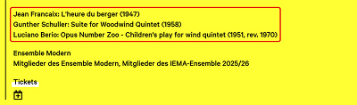 Und wer die Komponist*innen von den Stücken sind.